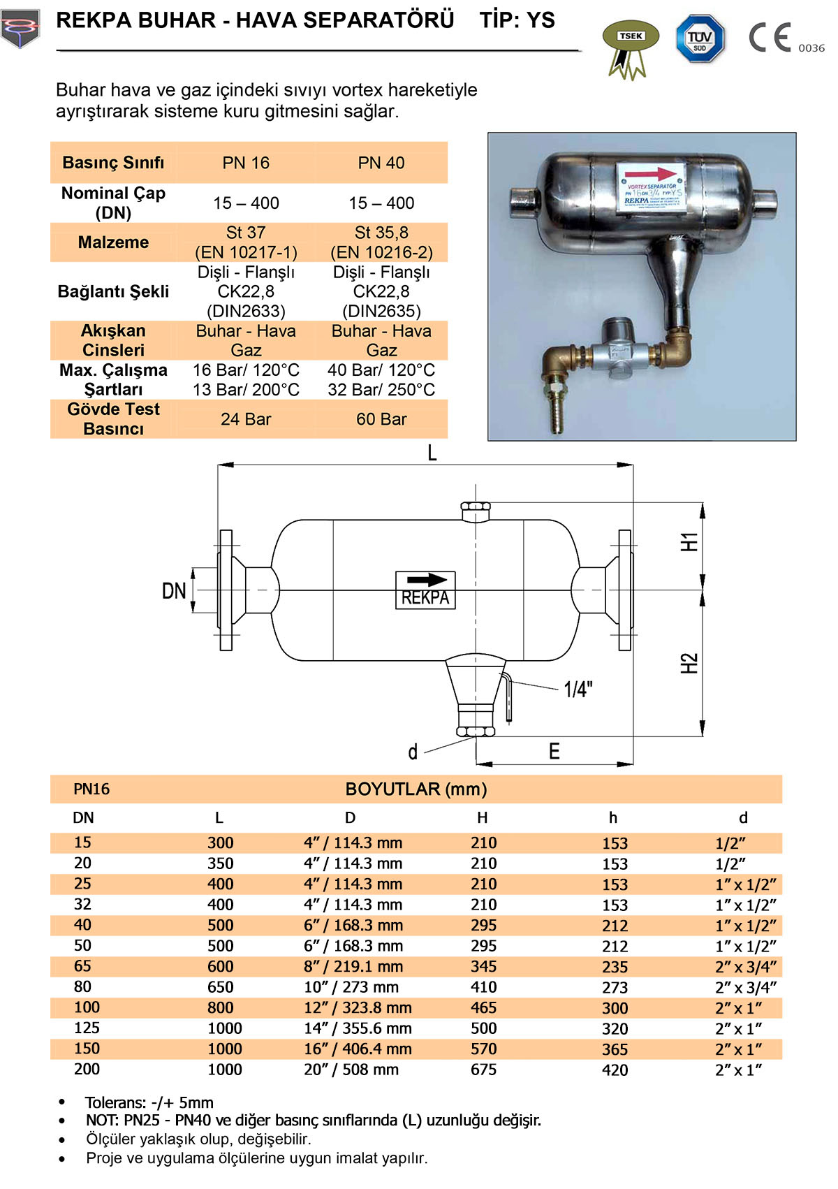BUHAR – HAVA SEPARATÖRÜ TİP : YS
